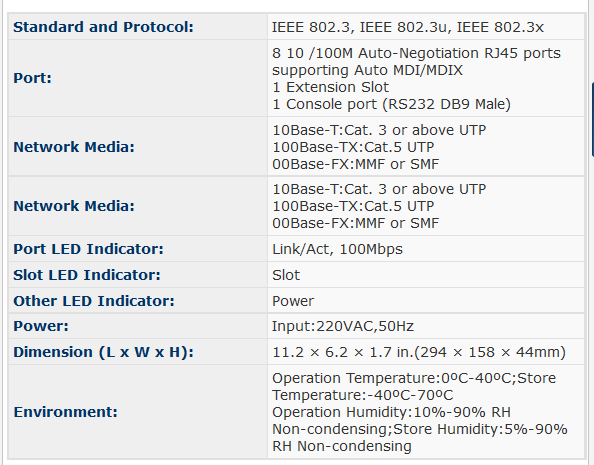 • 8 10/100Mbps Auto-Negotiation RJ45 ports supporting Auto MDI/MDIX